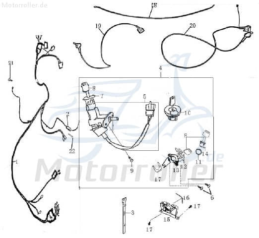 zu Artikel: Schlosssatz mit Tankdeckel mit Belüftung 1 Stecker 4-polig (ohne abgedichtete Steckverbindung ) 2Takt 50ccm YY50QT-28 1E40QMB