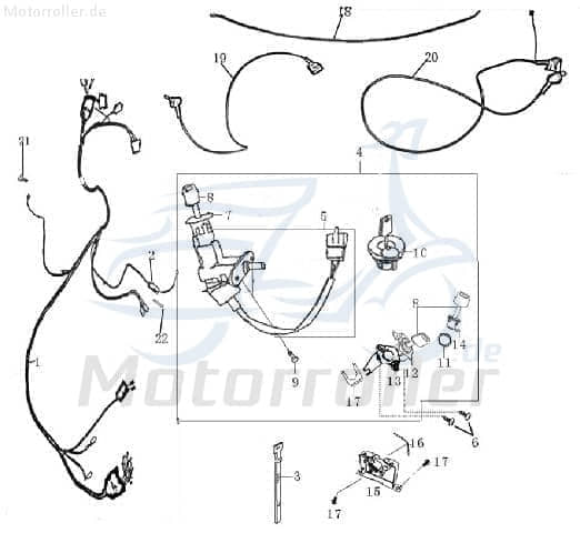 zu Artikel: Schlosssatz mit Tankdeckel mit Belüftung 1 Stecker 4-polig (ohne abgedichtete Steckverbindung ) 2Takt 50ccm YY50QT-28 1E40QMB